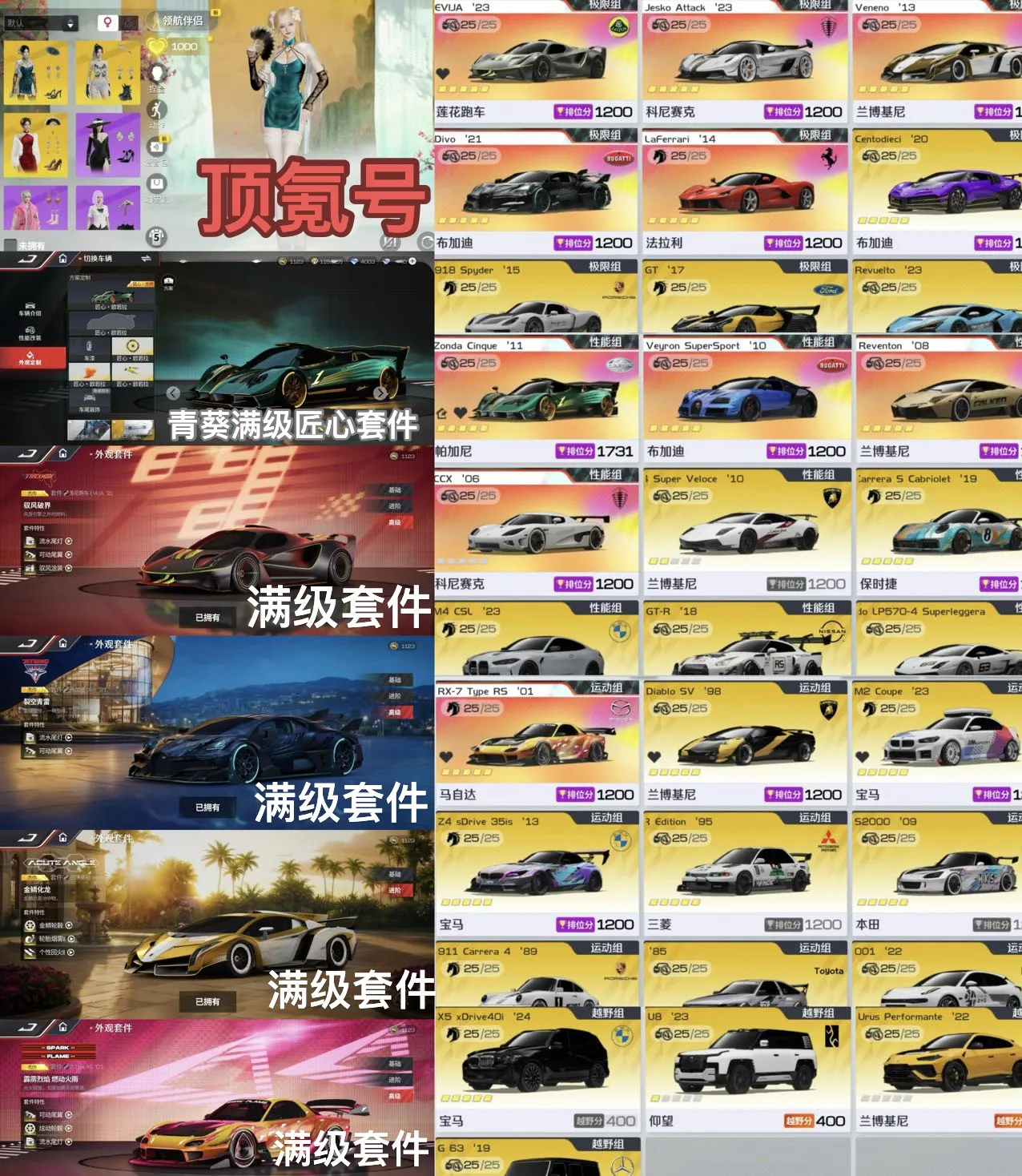 【苹果】 顶氪✨3高定时装/30多满阶金✨满阶青葵匠心套件/满级莲花/满阶杰哥/毒药/威龙/雷文顿rx7等