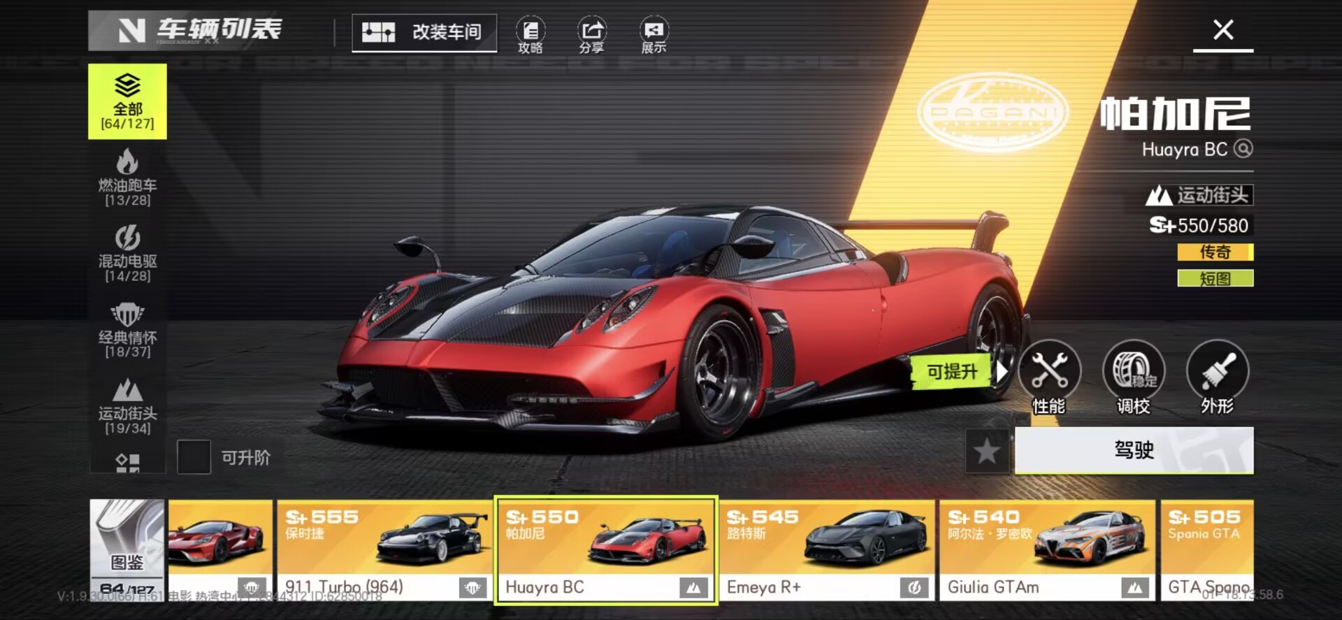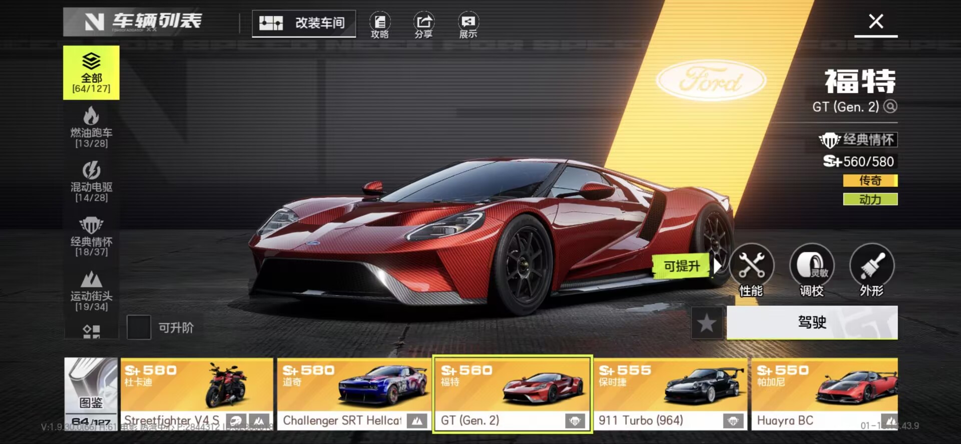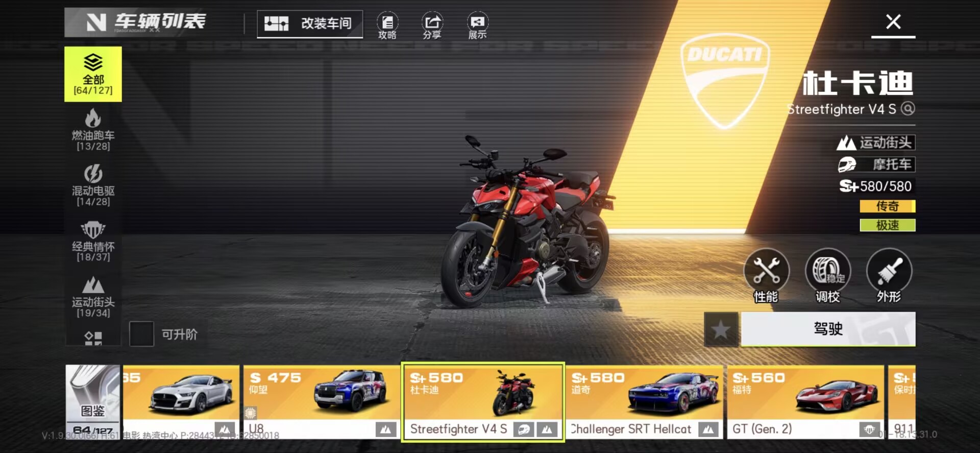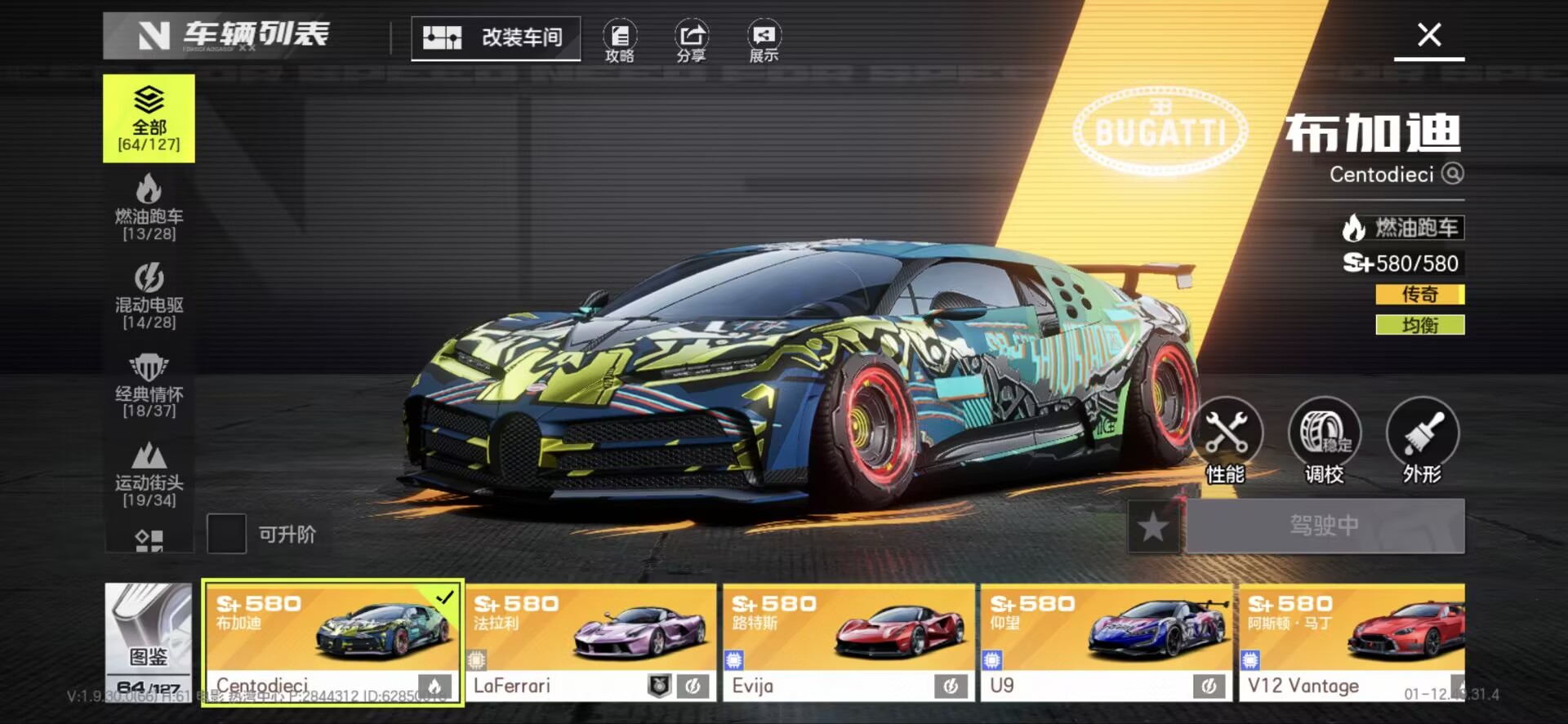 有满改拉法,满改布加迪白龙王,满改电莲花Evijia,差一改梅奔sls amg,满改杜卡迪v4s金摩托,合约车帕加尼风神huayra,有AE86等