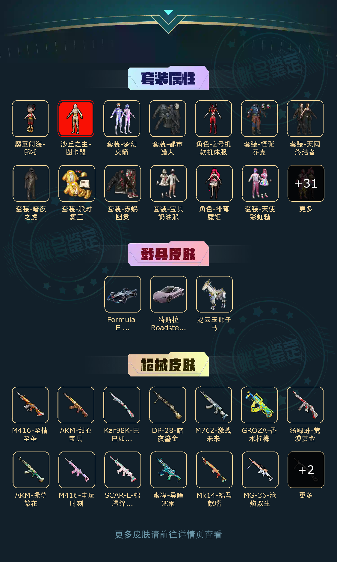 超级王牌2星39粉,3载具,376套装,26王牌印记,无敌战神历史最高段,160875热力值 AKM-甜心宝贝/AKM-绿萝繁花/M416-电玩时刻/M762-激战未来/GROZA-香水柠檬/M416-五爪金龙/SCAR-L-锦绣绵绵/M416-至情至圣/蜜獾-异瞳寒姬/Mk14-福马献瑞/DP-28-暗夜鎏金/MG-36-沧焰双生/DP-28-豹影疾电/汤姆逊-荒漠赏金/Kar98K-巳巳如意/特斯拉Roadster(沁心粉)/Formula E Gen2(幽光蓝)/赵云玉狮子马/照夜玉狮子/
