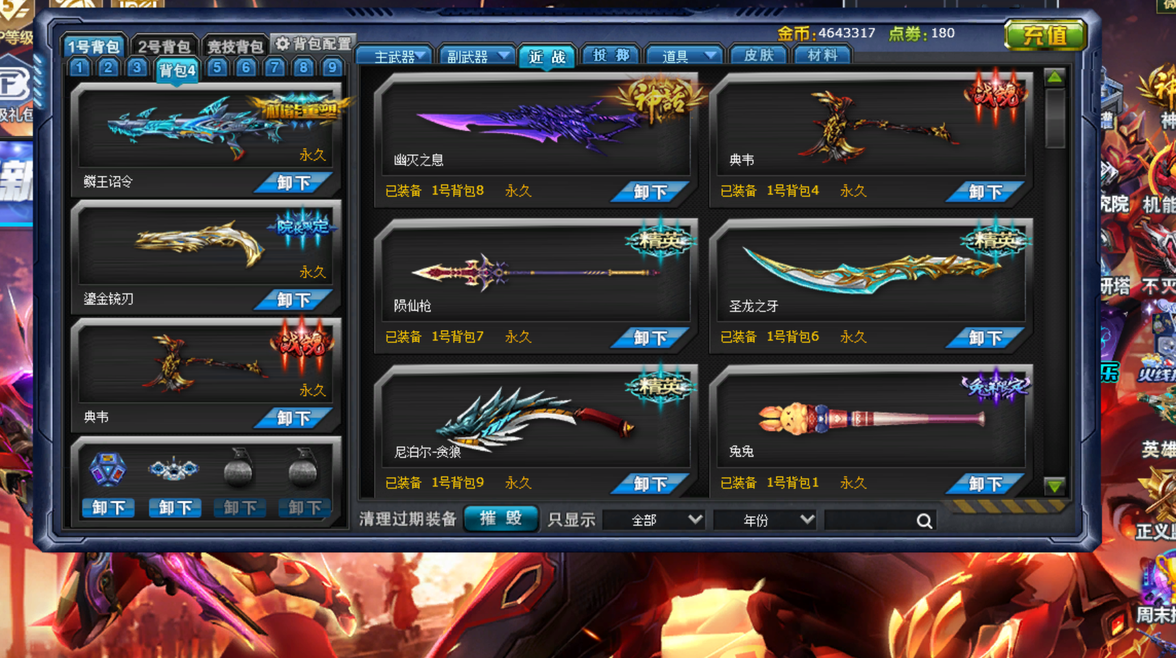 鳞王诏令,浩日,幽灭,夜莺|马超|许褚|原核|双羊枪|幽星套|海滩套|波塞冬4切|卡牌|金甲|命运三|海皇|豹宝|天魔之煞|机动战士|鎏金|典韦|陨仙枪|魔剑|圣龙之牙|兔兔|飞行套|贪狼|神兽套|命运骰掷|火雷|镰刀|三阶拂晓,英雄F92,阿巴顿,女亚瑟,悟空,生化高级徽章幻术师