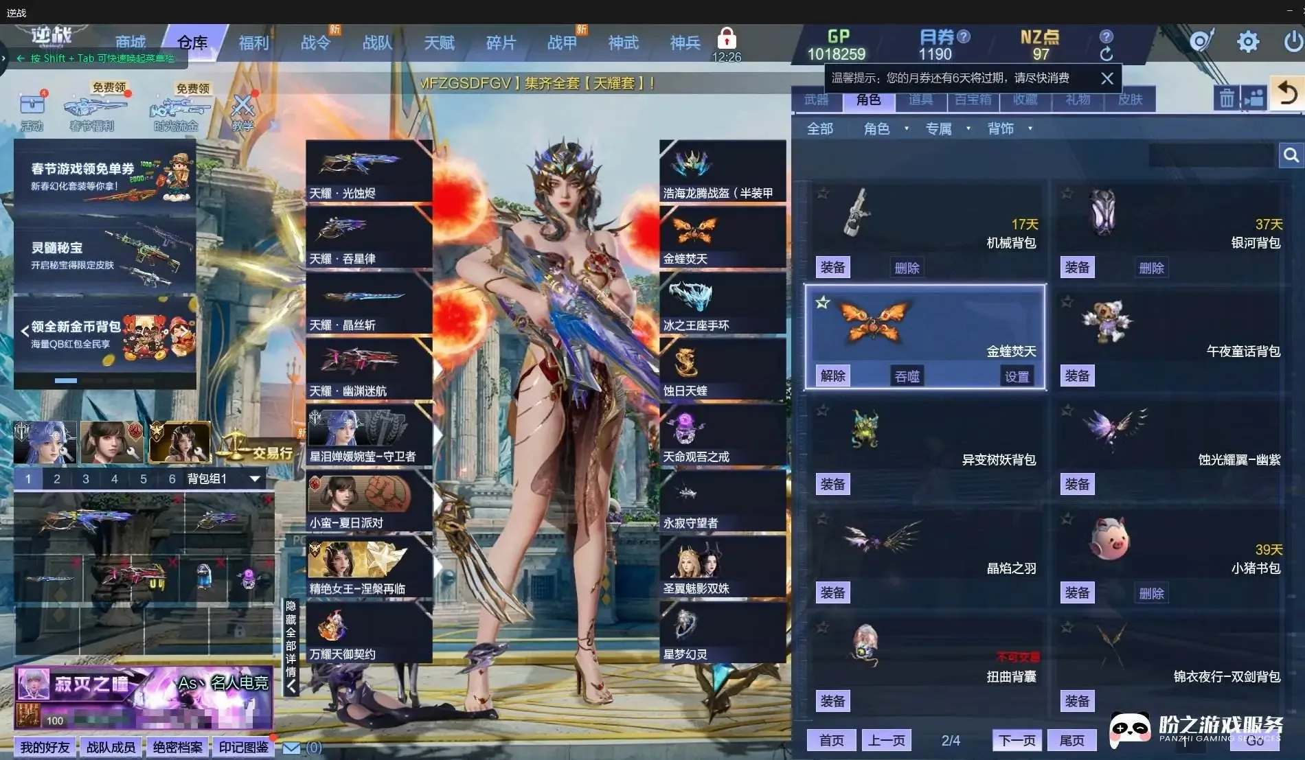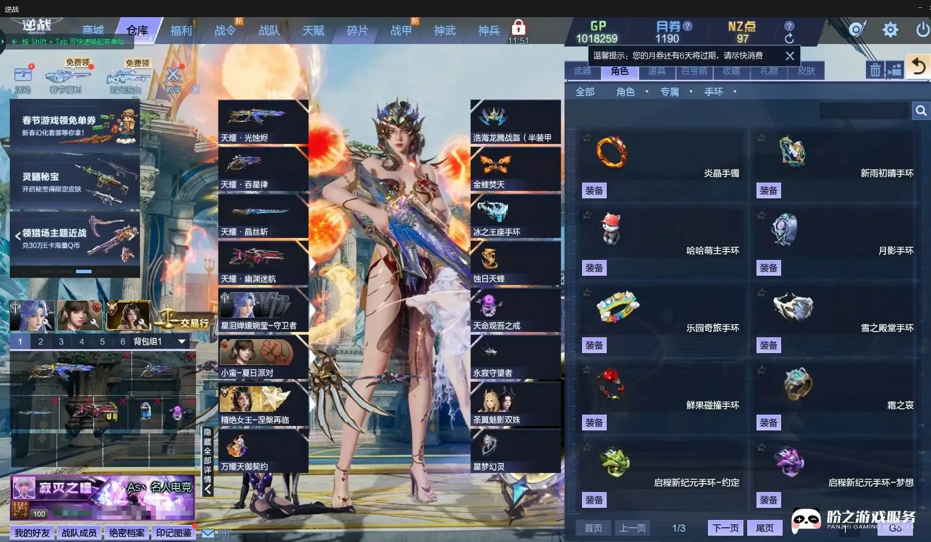 莱娜/精绝女王-涅槃再临/精绝女王-涅槃幻化/精绝女王-传奇觉醒/精绝女王-幻化/“元”/金国王妃-位移/玄魔金焰凌曜-幻化/金凰魔烬玉瑶-幻化/裁决之誓雷加/缄默誓吻薇薇安/天使之吻薇薇安/黑丝仲裁卡蜜拉/破晓断罪雷加/女巫尼雅/大元素使-安娜/凌月/凌星/摇滚之恋-主唱艾比/小蛮-夏日派对/神威之子基格-天使/雪域魅姬-格挡/晶墟骁将渊恒-幻化/晶墟骁将渊恒-天使/星泪婵媛婉莹-元素/星泪婵媛婉莹-幻化/逍遥玄女初云-幻化/无极真君天澈-天使/无极真君天澈-幻化/逍遥玄女初云-天使/晶墟骁将渊恒-突击者/星泪婵媛婉莹-守卫者/蛮荒尊者玄璟-天使/琉璃-天使/风来暗刃海瑟薇-天使