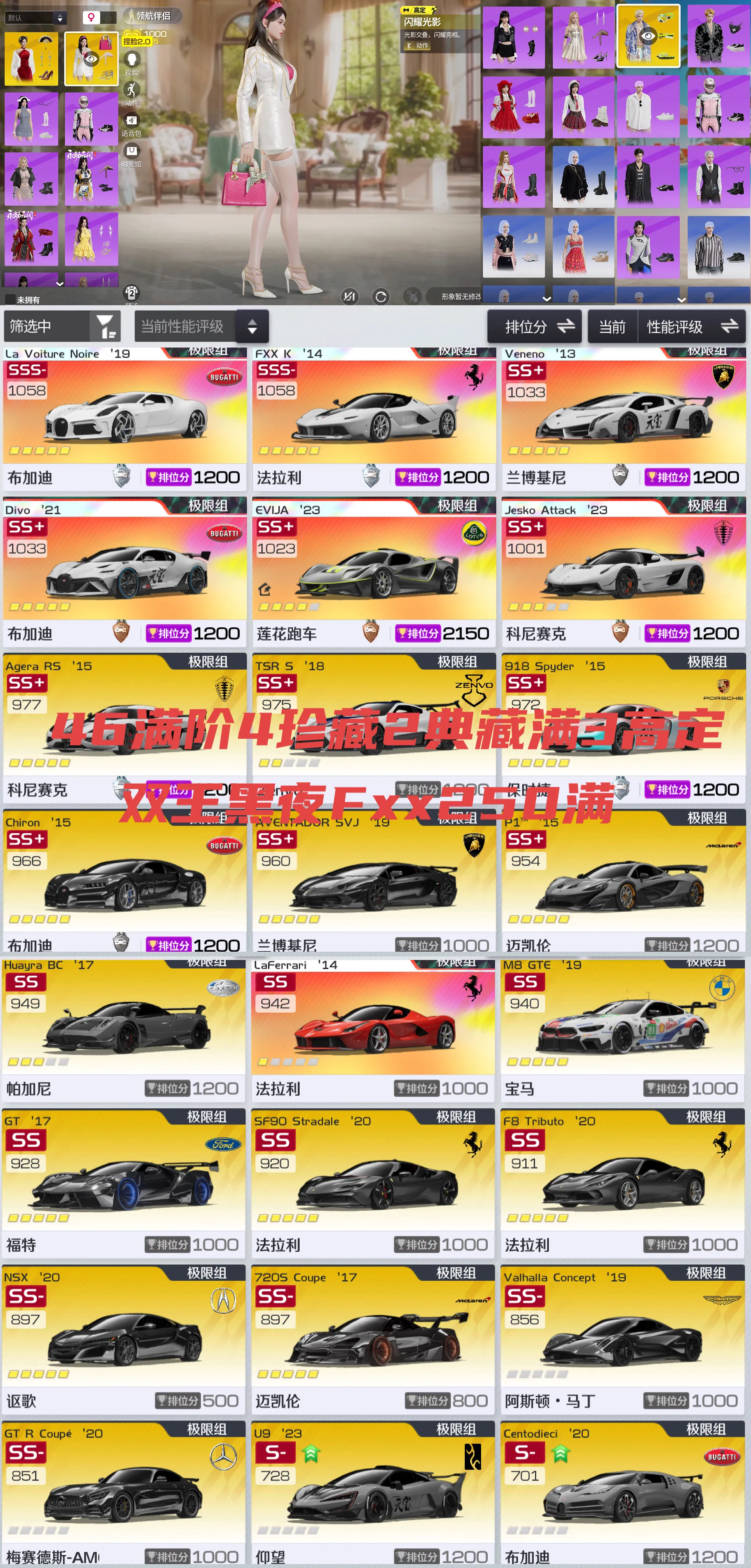 【安卓】 三端互通✨46满阶3高定/有第六元素✨4珍藏2典藏满阶✨满阶双王黑夜Fxx 250毒药divo雷文顿