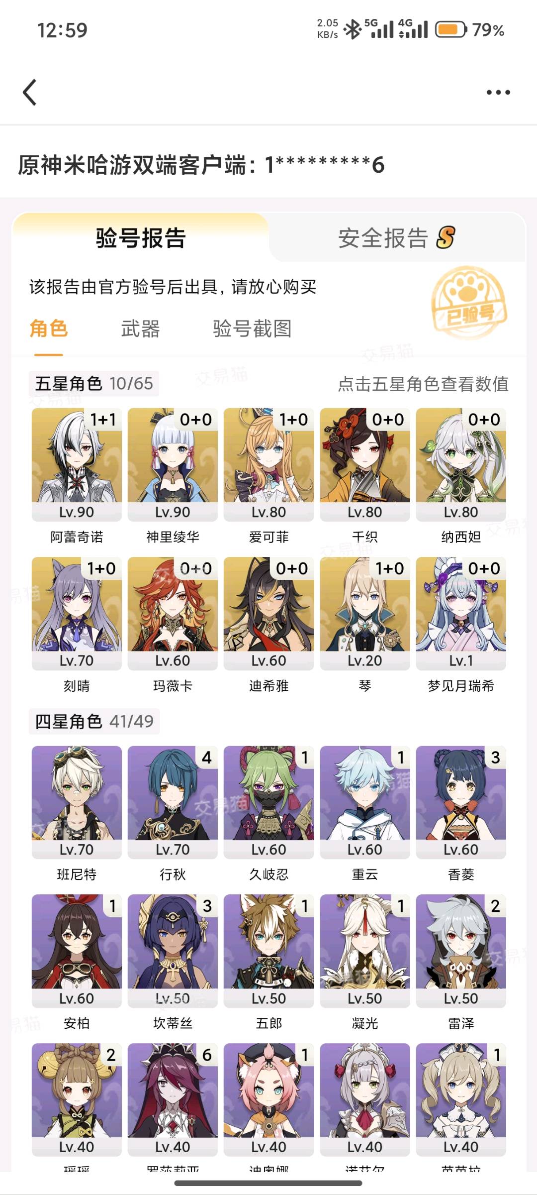 【全平台】 10金,一命仆人加专武,一命爱可菲,绫华,千织,小草神,火神