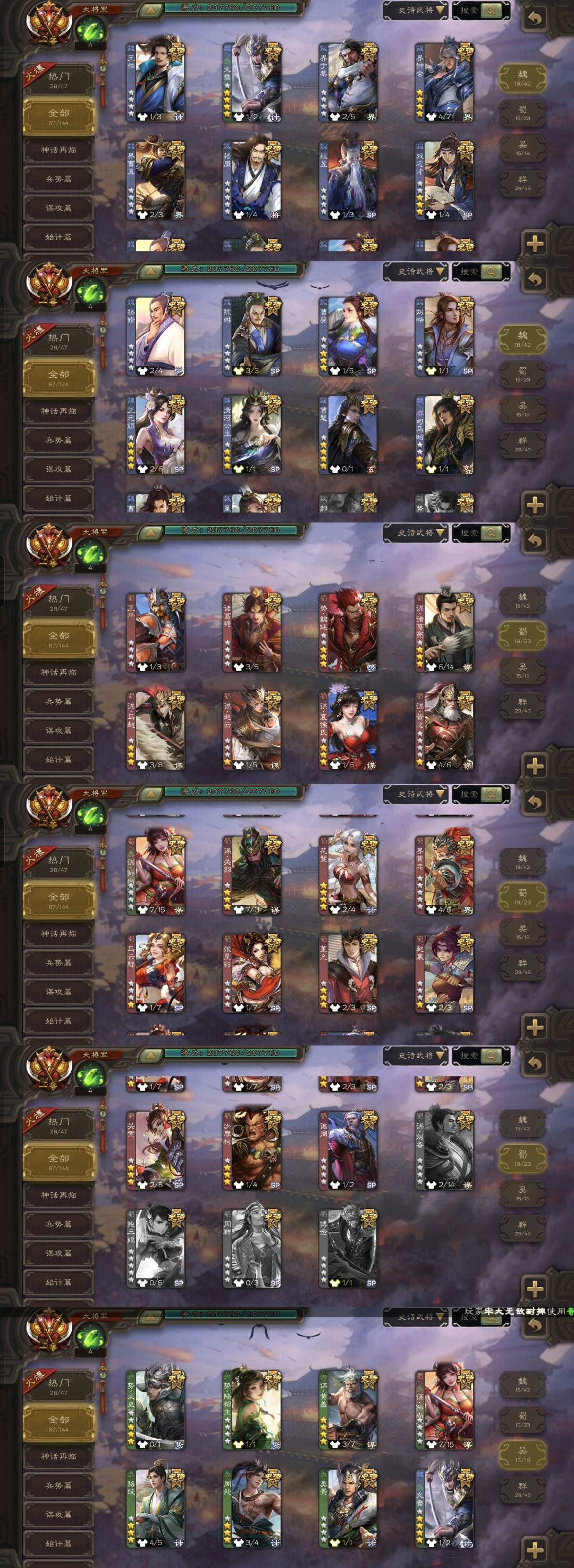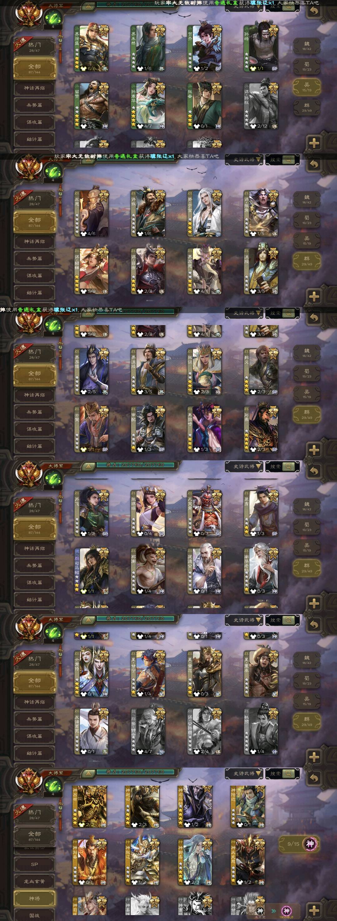新品权一友诸葛亮,新品势魏延, 新品势太史慈,新品势于吉,新品动态势陆郁生,新品史诗曹髦,新品动态司马昭,新品加强动态神司马,新品大攻车张奋,新品权一动态谋关羽,新品回廊动态界沮授大人,新品谋吕布,新品动态清河公主,新品回廊动态神赵云,新品回廊动态大宝,至臻双形态神郭嘉,新品至臻双形态跑男孙策,至臻双形态界钟会,梦廊动态神荀彧,新品回廊动态刘焉,强力十常侍,梦廊动态文鸯,仙女动态孙寒华,动态谋黄忠,动态谋黄盖,奇门动态谋貂蝉,谋夏侯氏,动态谋香香,动态谋诸葛亮,动态王元姬,动态界左慈,曹婴,张琪瑛,强力裴秀,新品回廊动态大宝,动态神吕布,梦廊动神太史慈,动态留赞,动态白马,界李儒,戏子,神陆逊,沙摩柯,许攸,骆驼,周处,祢衡,南华老仙,周不疑,星甘宁黄忠董卓,鲍信闫象谋诸葛瑾动态谋黄月英87ss