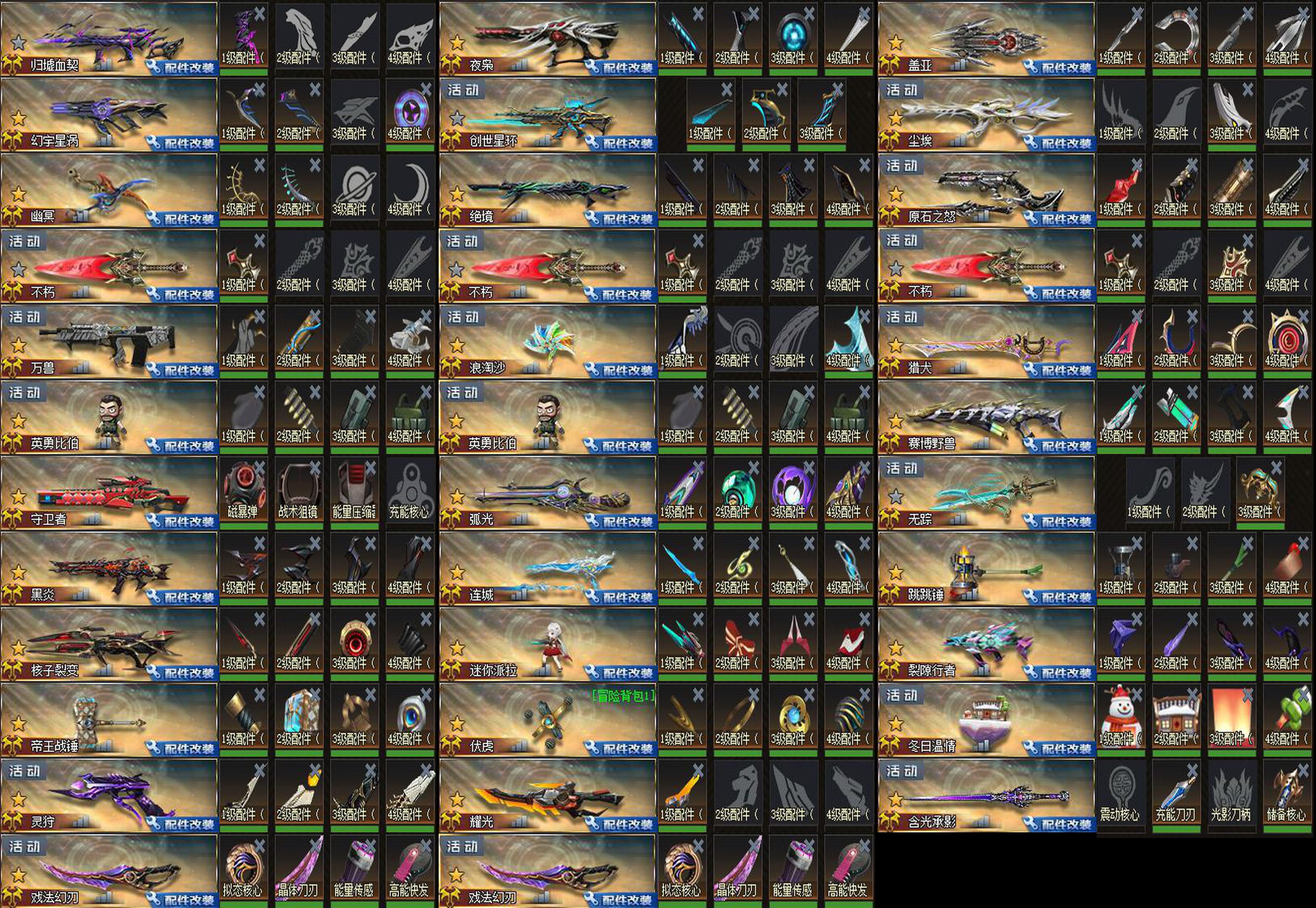 配件✨渊瞳丨归墟血契丨幻宇星涡 x2丨创世星环丨闪击丨尘埃丨幽冥丨绝境丨弧光丨无踪丨黑炎丨连城丨跳跳锤丨核子裂变丨迷你派拉丨裂隙行者丨帝王战锤丨终末之弩丨伏虎丨冬日温情丨灵狩丨原石之力丨耀光丨含光承影丨戏法幻刃 x2丨