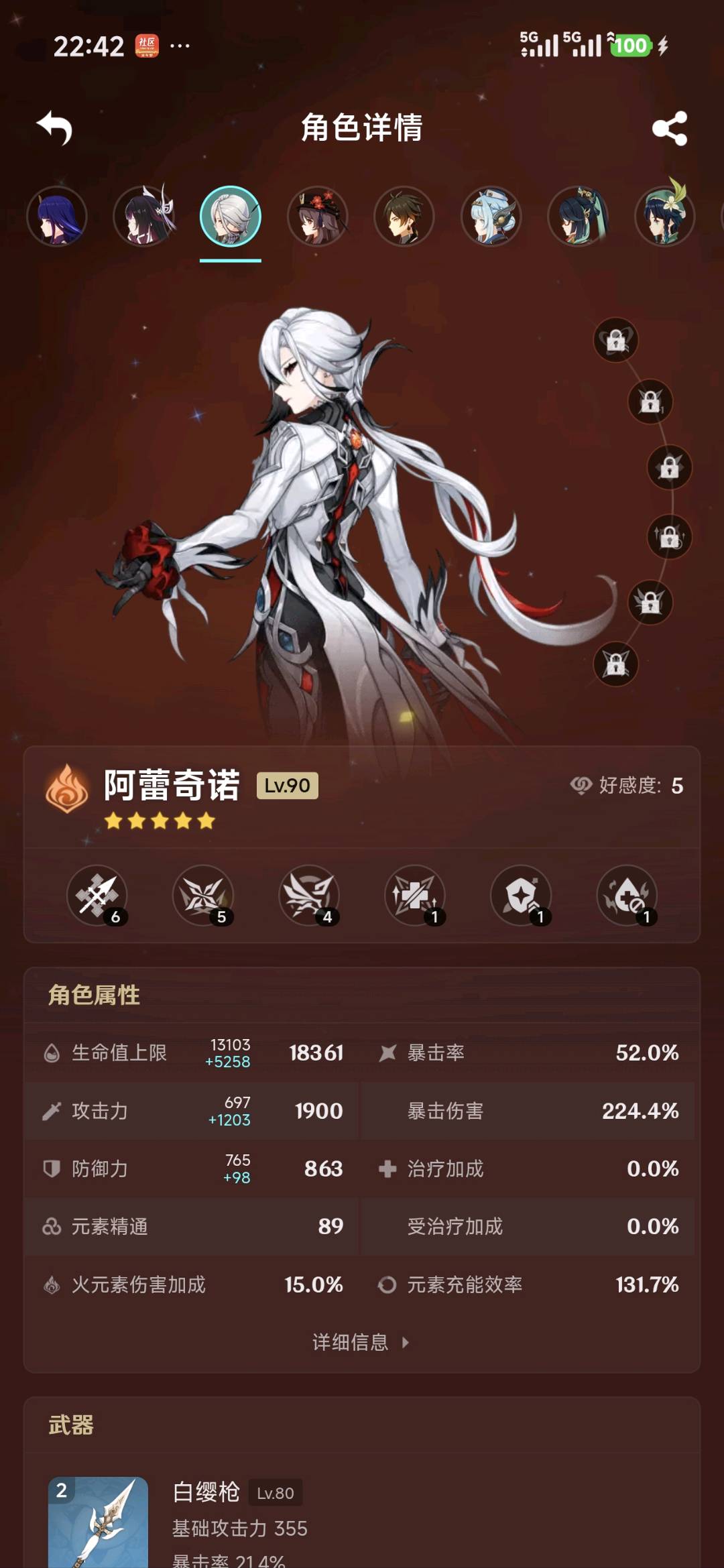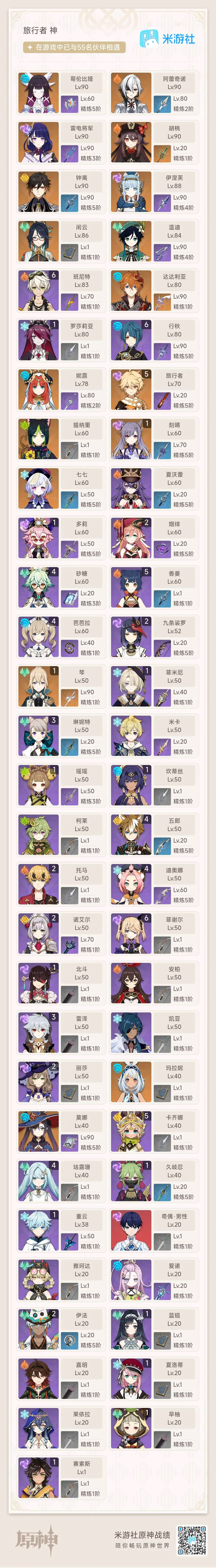 【全平台】 要验证码的话给我打电话级56 黄数21 主角男主 五星角色16 五星武器3 原石92 圣遗物242