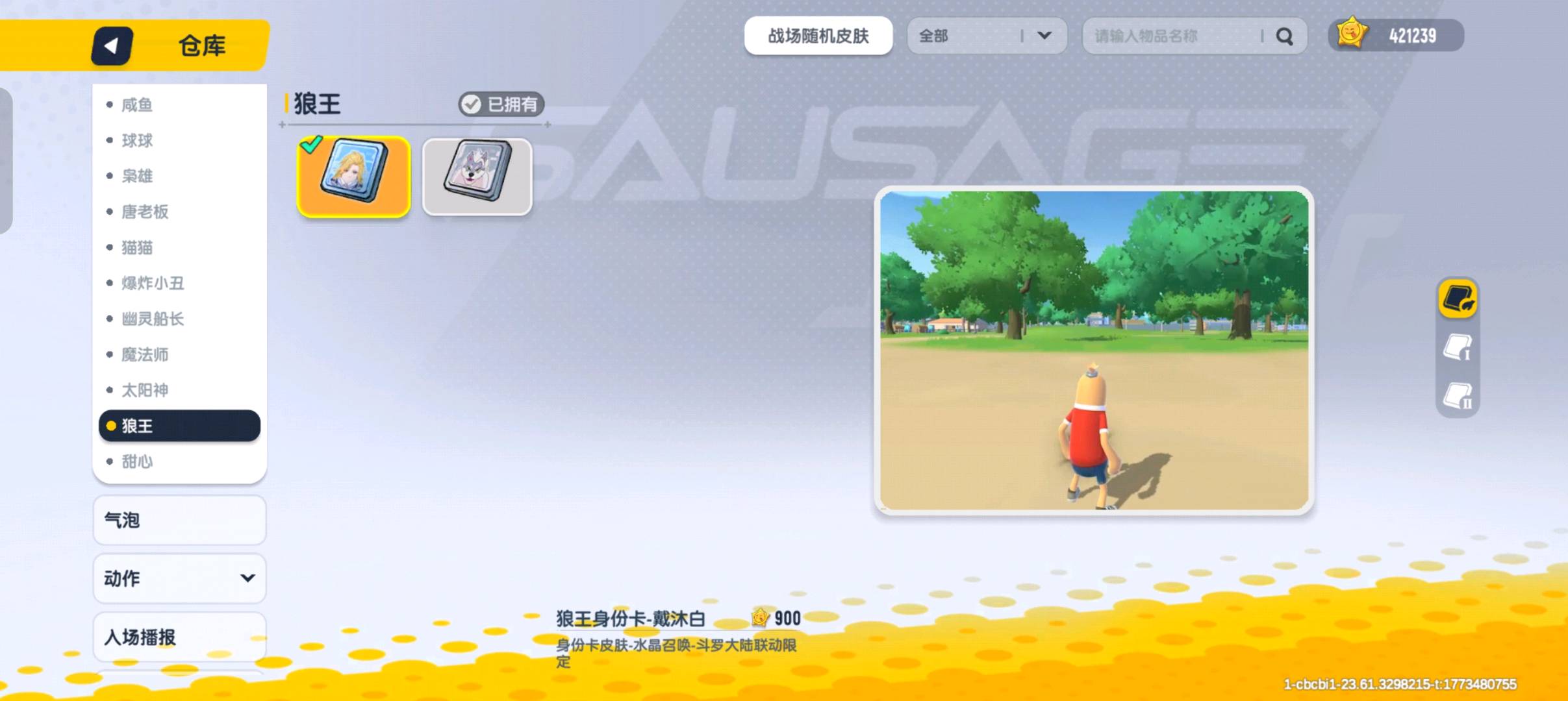 【安卓】 42万美味值,各种金皮肤,伍六七全套,狼王卡戴沐白皮肤,魔虎飞车,消防巴士,平常心套装,